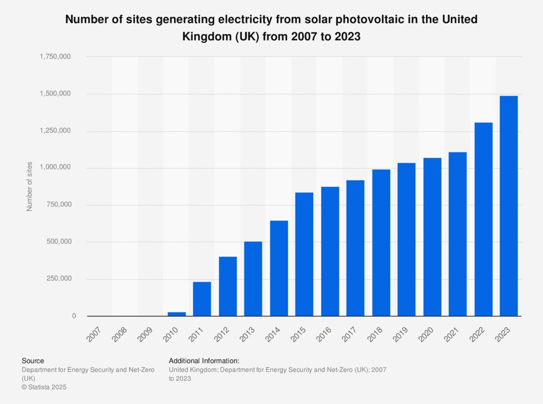 Another way for heat pump owners to reduce their heating bills is with solar power. In the UK, solar panels are getting more and more popular, with growth of over 10% year-on-year since 2022. There are now over 1.5 million homes generating their own power with solar PV! By utilising heat pumps and solar panels, homeowners can heat their hot water and home during the day without spending a penny.